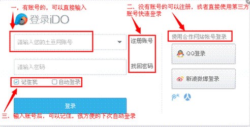 答:點(diǎn)擊iDo右上角的“登錄”按鈕,彈出登錄窗口: