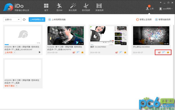 答:在上傳列表,點(diǎn)擊“管理視頻”,跳轉(zhuǎn)到土豆網(wǎng)進(jìn)行視頻管理;