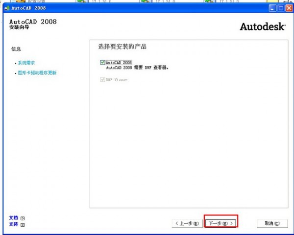 勾選“auto CAD 2008”點擊“下一步”繼續(xù) 如圖五。