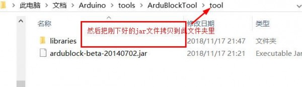 默認(rèn)位置為“C:\My Documents(我的文檔)\Arduino”。一級一級地在這個目錄下建子目錄,如:“C:\My Documents\Arduino\tools\ArduBlockTool\tool\”(強(qiáng)調(diào),文件夾名一定要區(qū)分大小寫,否則無效),然后把下載好的ardublock-all.jar文件拷貝到tool文件夾里。