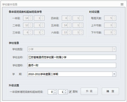 7、課表升級(jí):學(xué)年初排課時(shí),可以對(duì)上學(xué)期的課表進(jìn)行升級(jí),教師任課自動(dòng)升至高一年級(jí)(如二年級(jí)的任課升至三年級(jí)),并根據(jù)設(shè)定新增一年級(jí)各班信息。