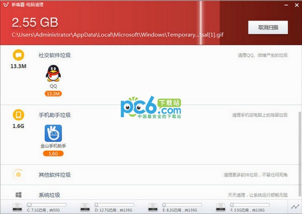 新毒霸電腦清理是金山毒霸推出的一款最新的垃圾清理功能的清理工具,此版本為獨(dú)立版,不用安裝金山毒霸即可直接使用清理垃圾功能。新毒霸電腦清理為我們帶來的不僅僅是酷炫的界面,絢麗的動(dòng)畫效果,直觀的掃描結(jié)果,可對視頻音樂垃圾、上網(wǎng)垃圾、設(shè)計(jì)軟件垃圾、手機(jī)助手垃圾、其他軟件垃圾、系統(tǒng)垃圾等等進(jìn)行清理,感興趣的朋友不要錯(cuò)過了哦!
