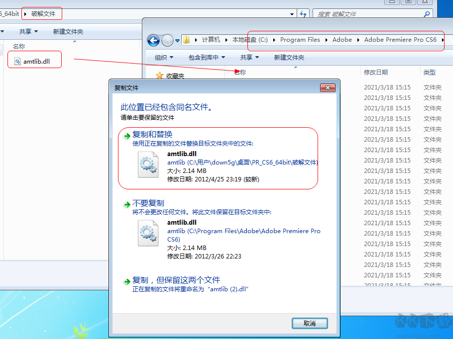 8、打開破解文件夾,將里面的amtlib.dll文件,復制到軟件安裝目錄,替換原文件;