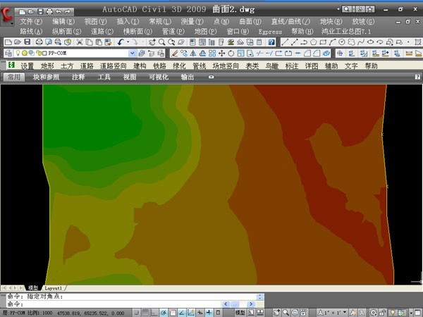 2D平面圖:以平面繪制高程彩色圖。只適合在2D渲染方式下查看。