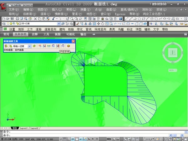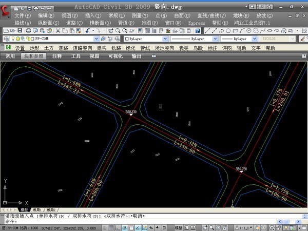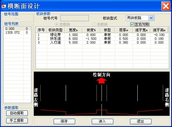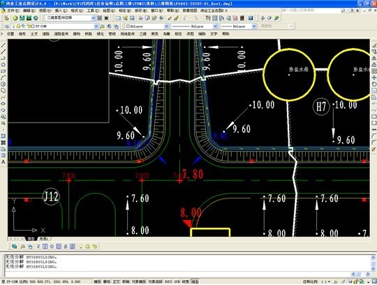 對各種道路參數(shù)進(jìn)行自動編輯、標(biāo)注,快速形成道路系統(tǒng)分析圖,自動搜索并標(biāo)注各控制點(diǎn)坐標(biāo)和自然、設(shè)計(jì)標(biāo)高,快速地定義道路樁號、道路標(biāo)高,自動提取自然標(biāo)高和設(shè)計(jì)標(biāo)高,快速繪制橫、縱斷面圖,設(shè)計(jì)邊坡形式并自動計(jì)算道路土方工程量,自動繪制示坡線,并具備擋土護(hù)坡設(shè)計(jì)、自動沿道路布雨水口、雨水明溝計(jì)算等功能。在場地豎向布置方面可以自動計(jì)算并標(biāo)注排水方向,自動生成設(shè)計(jì)等高線,方便地標(biāo)注坡度等。