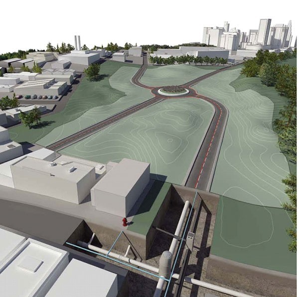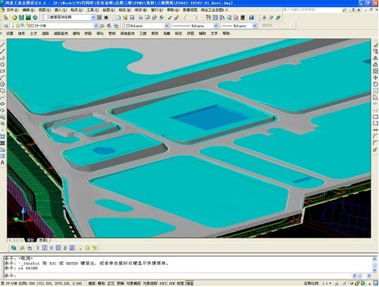 快速的進(jìn)行場地三維設(shè)計(jì),自動生成場地、道路、溝道、建構(gòu)筑物、圍墻的三維模型,場地模型可以準(zhǔn)確的反映出廠區(qū)的地表起伏,實(shí)現(xiàn)了三維場地模型與其他三維模型的銜接,能自動生成場地和道路銜接處的邊坡,還可以對生成的場地進(jìn)行局部調(diào)整。