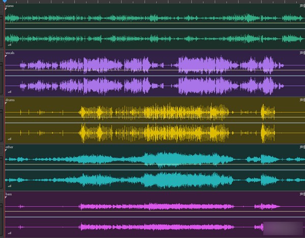 把這五個軌道拖入audition即可看到非常好效果,完美按照樂器剝離。