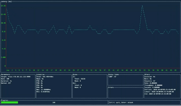 能夠?qū)崟r(shí)展示分析的壓力測試工具。現(xiàn)在壓測工具有很多,這款的亮點(diǎn)在于可以在終端實(shí)時(shí)展示壓測過程的曲線。