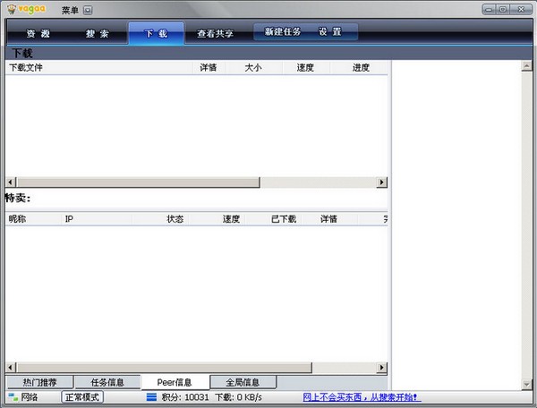 哇嘎嘎即哇嘎Vagaa軟件是一款強大的資源分享工具,在這里你可以獲得更多的互聯(lián)網(wǎng)資源如軟件、電影、音樂等等,它加入了P2P算法,下載的人越多速度越快!讓眾多網(wǎng)友通過網(wǎng)絡連接起來!