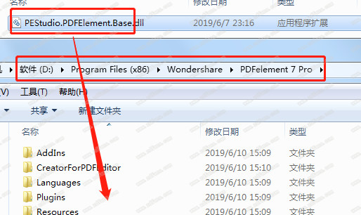 2、先安裝原版,然后把破解補(bǔ)丁放到軟件的安裝目錄中。小編安裝的在“D:\Program Files (x86)\Wondershare\PDFelement 7 Pro”。