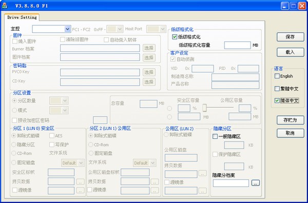 下載解壓之后,首先配置文件,打開MPParamEdit_F1.exe。點擊“OK”。然后進入如下畫面:右邊勾選“簡體中文”