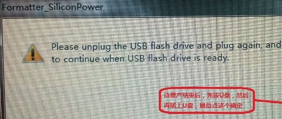 等上個幾秒鐘會彈出如上窗口,注意:這時千萬不要拔U盤,也千萬別點確定;