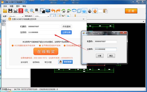 1、先安裝原版軟件,然后運行軟件后點擊注冊,再運行安裝包內(nèi)的注冊機,將軟件中的機器碼復制到注冊機中