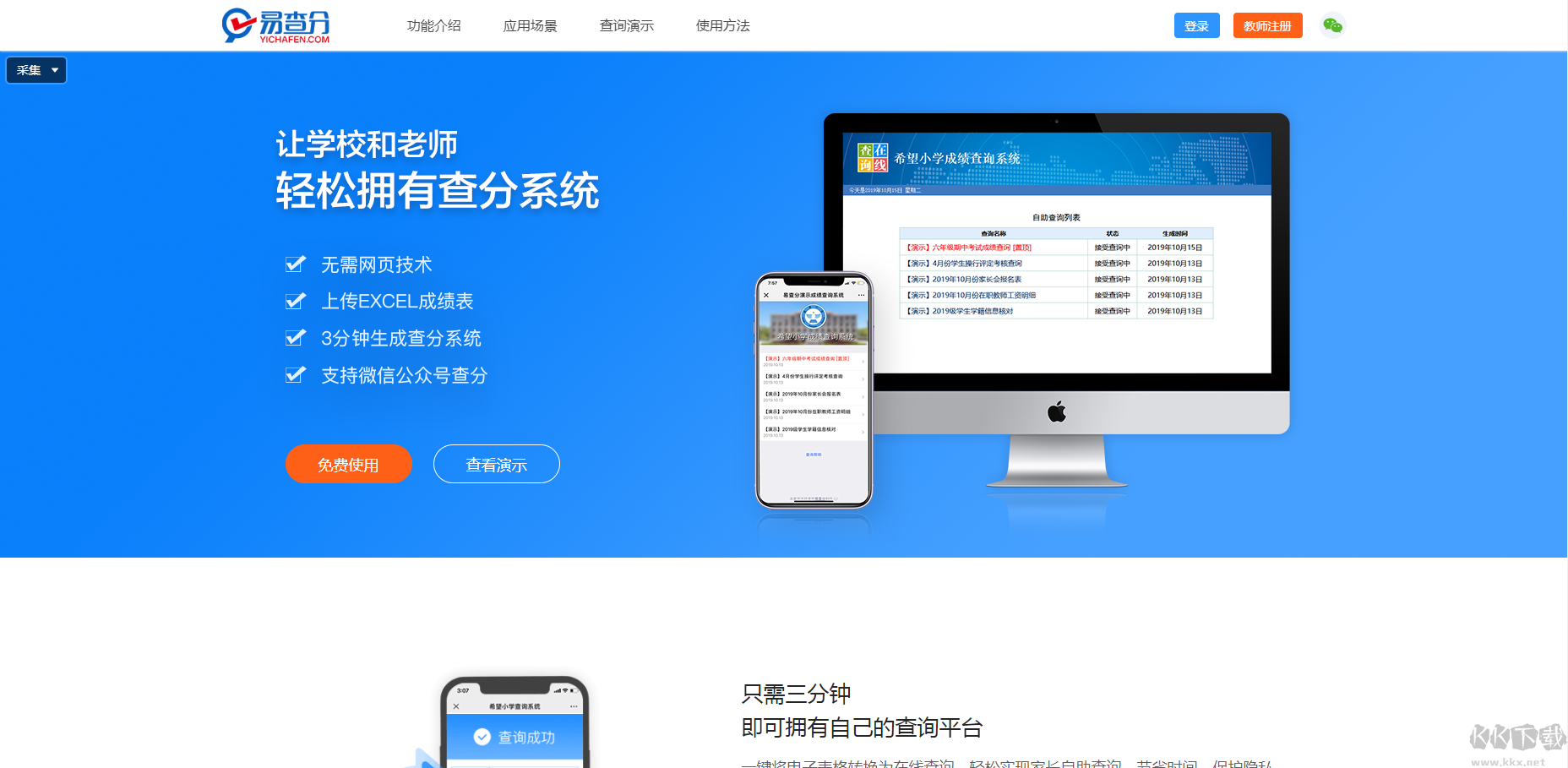3、非常的方便而且簡(jiǎn)單,只需要上傳Excel成績(jī)表格就能生成查詢(xún)網(wǎng)站