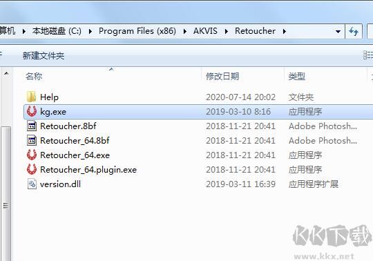 2.安裝完復制學習補丁文件夾里kg.exe和version.dll(視你的系統(tǒng)XP和Win7/win10不同,復制不同文件夾中的文件)到C:\Program Files (x86)\AKVIS\Retoucher下。如下圖:
