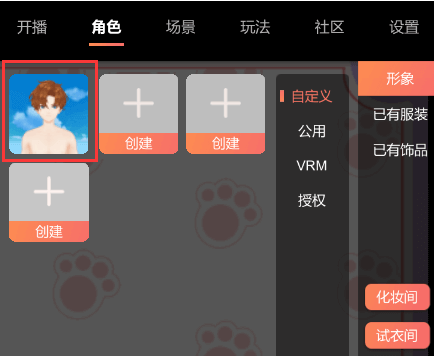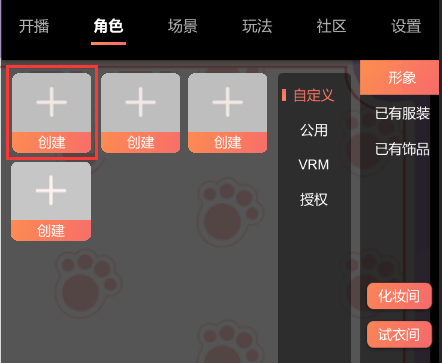 1、角色-形象-自定義中,點(diǎn)擊【創(chuàng)建】,即可選擇創(chuàng)建角色的類型。