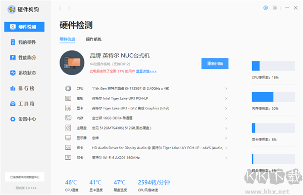 [我的硬件] - 硬件詳情一目了然,適合想了解自己詳細硬件信息的朋友。