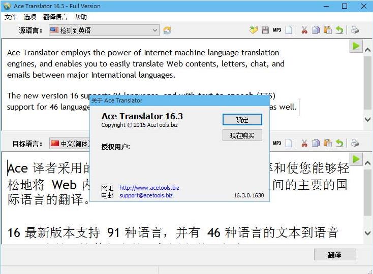 Ace Translator,Altavista BabelFish在線翻譯引擎的翻譯工具,這款軟件官方高級商業(yè)許可證價值人民幣726元,此特別版已由 zd423 硬破解為永久許可證版,無需注冊碼,無14天試用期限限制!已經(jīng)完全禁止了主程序內(nèi)置后臺悄悄發(fā)郵件行為,使用過程不會接受到使用盜版的郵件提醒!