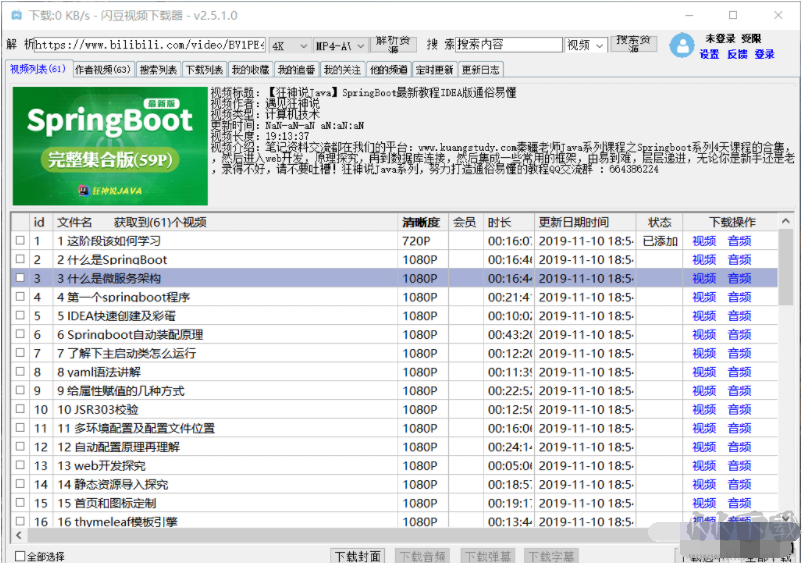 軟件很實用,將你需要下載的視頻鏈接復(fù)制到軟件上解析后,會顯示該套視頻的標(biāo)題、作者、介紹……這就很適合用來下載“學(xué)習(xí)資料”了