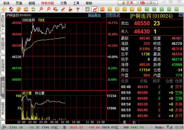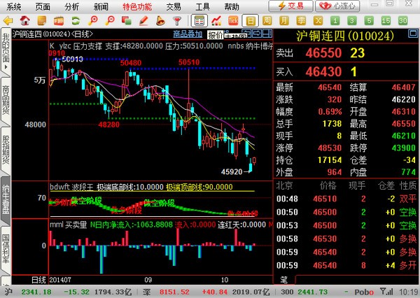1、自帶用戶名與密碼,買賣點提示指標 2、采用領(lǐng)先的計算機開發(fā)技術(shù)、全方位的設(shè)計方案,支持國內(nèi)、國際期貨、金融指數(shù)、上海深圳證券、外匯等市場的實時行情顯示及圖表技術(shù)分析 3、支持24小時全球品種看盤需求 4、博易大師使用簡捷方便、功能完備實用、股市行情數(shù)據(jù)接收快速準確;集成自定義指標、套利分析、商品疊加、快速下單程序化交易等多種實用工具