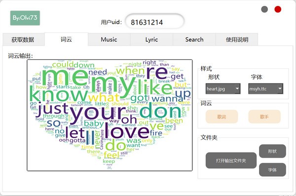 挑選適宜的外形及其字體樣式,點(diǎn)一下歌詞或是歌星,形成詞云。在樣子和字體文件夾可以添加自身喜愛(ài)的形狀圖片或是字體包。