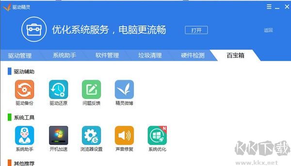 3、這里可以幫你檢查你的驅(qū)動有什么問題,或者清理垃圾、硬件檢測等。
