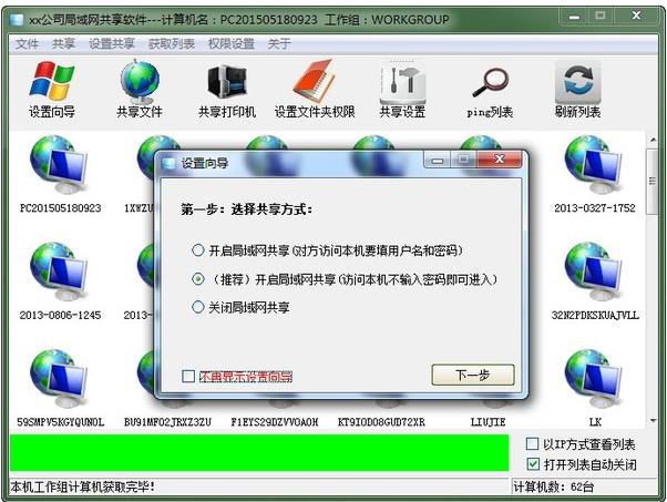 局域網(wǎng)共享軟件是一款可以幫助用戶快速解決共享問題的神器,局域網(wǎng)共享中會遇到很多問題,比如權(quán)限是經(jīng)常遇到的,局域網(wǎng)共享要設(shè)置的地方很多,本工具就可以很簡單的設(shè)置局域網(wǎng)共享,它是一款支持XP、WIN7、win10系統(tǒng)的一鍵局域網(wǎng)共享軟件,同時遇有共享文件,共享打印機,設(shè)置文件夾權(quán)限等各種功能。