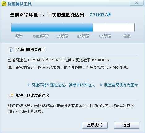 360“網(wǎng)速測試器”能準(zhǔn)確推算出用戶網(wǎng)絡(luò)的實際帶寬。如果一個無線網(wǎng)絡(luò)用戶接入了2兆帶寬的ADSL,測算出來卻只有1兆帶寬,無疑就是有“蹭網(wǎng)賊”暗地占用了網(wǎng)速。