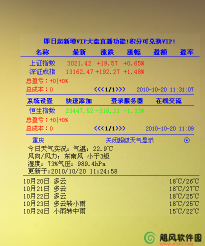 窗口隱蔽,不占用桌面空間。 可以設(shè)置你的股票監(jiān)控代碼! 可以在軟件中查看分時圖等信息 自帶了天氣信息,包括2400多個城市的天氣,精確到縣級! 使用方便,設(shè)置好股票隨時查看即時行情。 軟件的整個界面都為透明,只看得到股票代碼和價格,可以完全釘在桌面上。 以上便是KKX小編給大家分享介紹的桌面股票軟件!