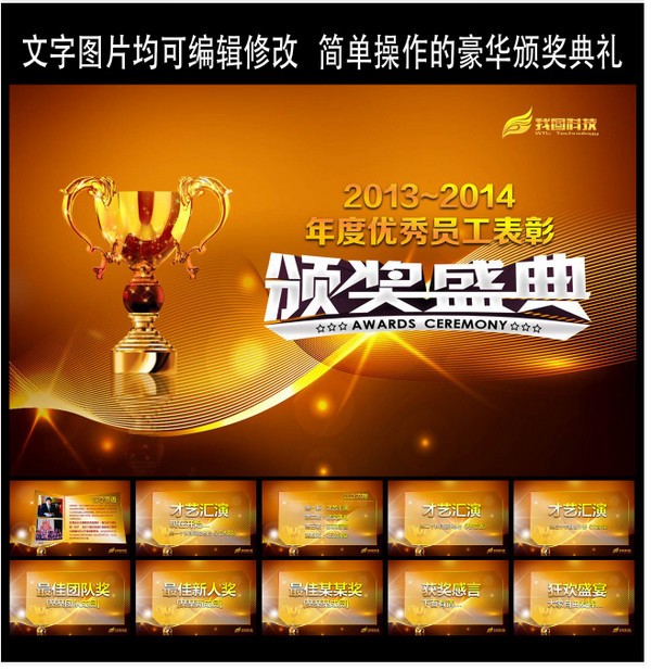 頒獎典禮展示專用大氣PPT模板采用PowerPoint軟件制作,需要使用office軟件來打開和編輯,這款KK下載站小編推薦大家使用WPS,點此免費下載