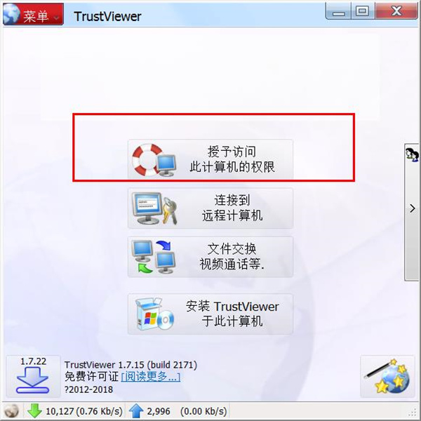 1、找開TrustViewer之后,我們先點擊“授予訪問此計算機的權限”選項。