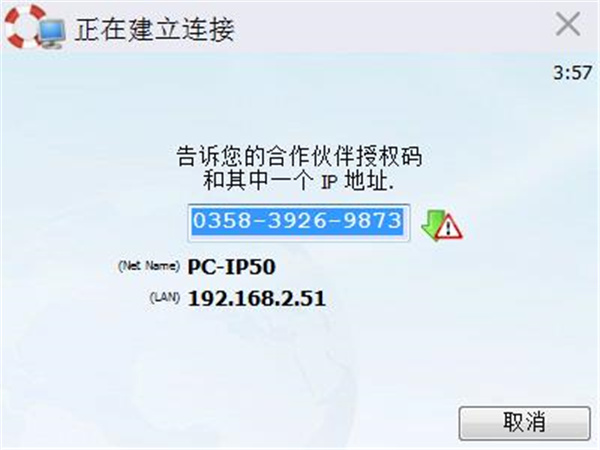 2、接下來你會獲得一個12位的連接密鑰,還有下面顯示了你的IP地址,如下圖所示: