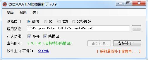 微信/QQ/TIM防撤回補(bǔ)丁是一款專門針對微信電腦版、QQ、TIM、QQ輕聊版開發(fā)的防撤回補(bǔ)丁程序,使用簡單!只要選擇軟件,點(diǎn)擊安裝補(bǔ)丁即可!同時支持多開,是你理想的聊天輔助工具。