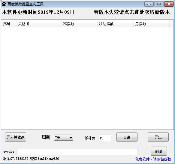 導(dǎo)入關(guān)鍵詞→選擇周期→設(shè)置線程→查詢→導(dǎo)出數(shù)據(jù)