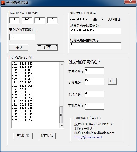 這款一把刀子網(wǎng)掩碼計(jì)算器可以自動(dòng)劃分A、B、C類IP,可以輸出劃分后的子網(wǎng)掩碼、子網(wǎng)位、最多子網(wǎng)數(shù)、主機(jī)位、最多主機(jī)數(shù)以及所有的子網(wǎng)列表,并可以將結(jié)果保存到文本文件。