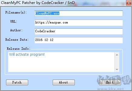 2、安裝完成之后,把補(bǔ)丁復(fù)制到安裝目所,執(zhí)行,點(diǎn)擊Patch按鈕即可破解!