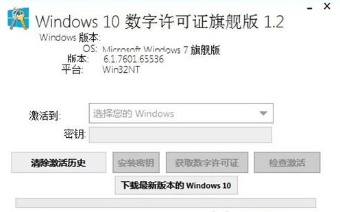 2、工具會自動檢測你的Win10版本,如不對請手動選擇,點(diǎn)擊獲取數(shù)字權(quán)利許可按鈕即可;