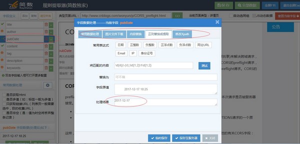 還可以對每個(gè)字段進(jìn)行詳細(xì)設(shè)置或數(shù)據(jù)處理(雙擊字段即可):替換,提取,過濾,設(shè)置默認(rèn)值等等,