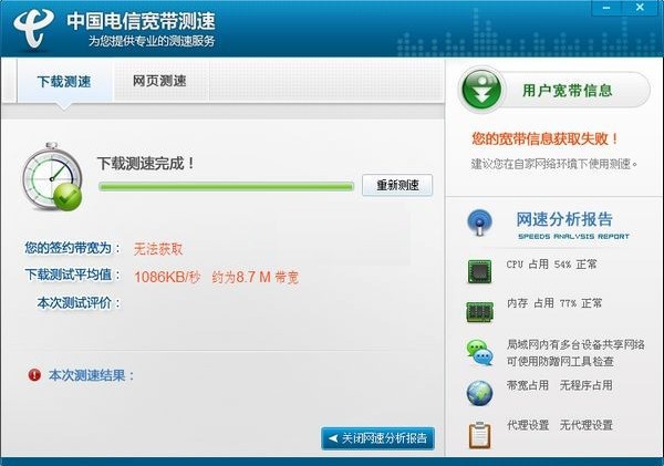 中國電信寬帶測速器綠色客戶端是一款可以通過下載測速功能測出寬帶的近似速度的一款寬帶測速工具,可以通過網(wǎng)頁測速功能測出連接網(wǎng)站的相似速度,從而準(zhǔn)確的獲取到當(dāng)前寬帶的峰值,為需要進行寬帶測速的用戶帶來了專業(yè)的測速服務(wù)!