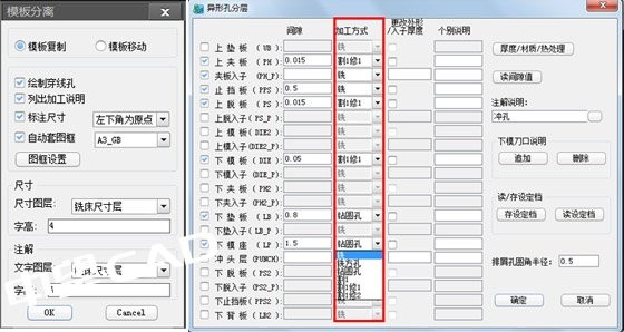 模具總裝圖繪制完成后,可自動(dòng)拆分出模板圖,繪制穿孔、列出加工說明、標(biāo)注模板尺寸、以及自動(dòng)套圖框。