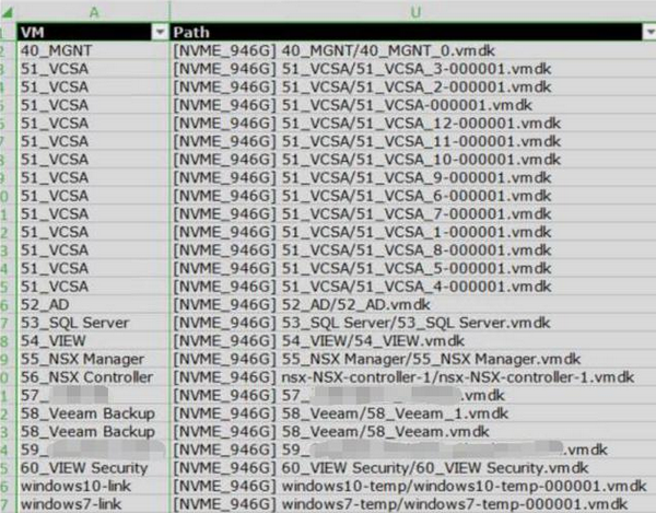 在RVTools中,包括了表明vm虛擬機、服務(wù)器、群集、網(wǎng)絡(luò)交換機、端口號組及其很多很多項目的視圖。這種視圖的每一行還包含了十分詳盡的信息,能夠幫助你編寫文檔或是排錯。假如我們將庫存信息導(dǎo)出來到Excel之中,還可以對視圖進行篩選并建立匯報。
