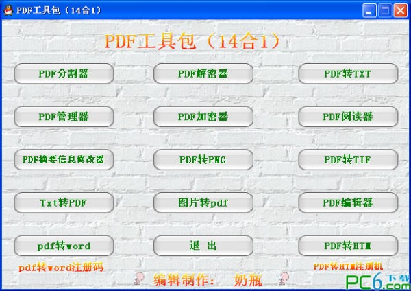 KKX小編在本文中給大家分享介紹的pdf工具包是一款包含了PDF分割器、加密器、解密器、閱讀器、PDF閱讀器、PDF摘要信息修改器、PDF轉(zhuǎn)HTM、PDF轉(zhuǎn)PNG、PDF轉(zhuǎn)TIF等共14款PDF工具軟件,是PDF文件處理用戶首先神器。