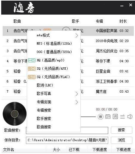 2、支持歌詞,歌手封面(五種尺寸),專輯封面(五種尺寸)下載;