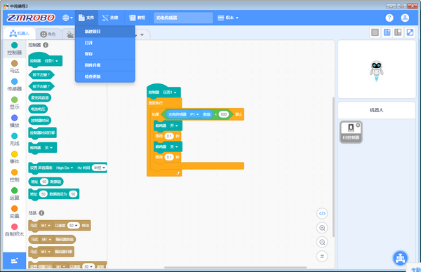 ZMROBO是一款非常出色的圖像編程軟件,這款編程工具主要是針對初學(xué)編程的兒童初使用的編程學(xué)習(xí)工具,能夠通過圖形的編成方式激起孩子的編程興趣,軟件專門用于設(shè)計機(jī)器人動作,軟件內(nèi)置了教學(xué)方案,手把手教學(xué)孩子編程,非常方便。