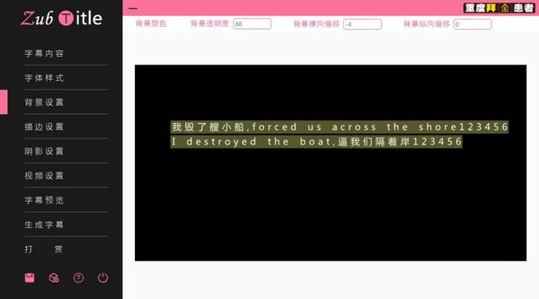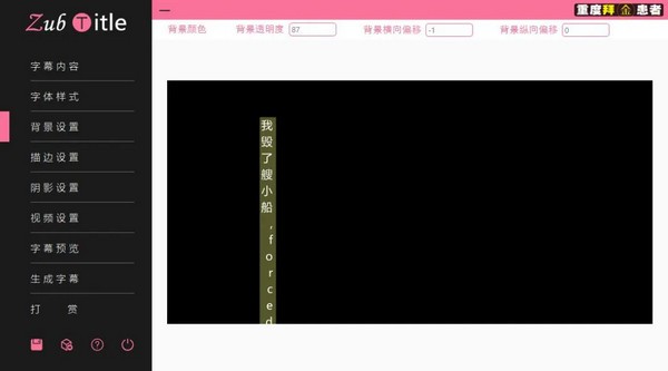 【背景設(shè)置】界面給字幕設(shè)定一個(gè)背景顏色長條