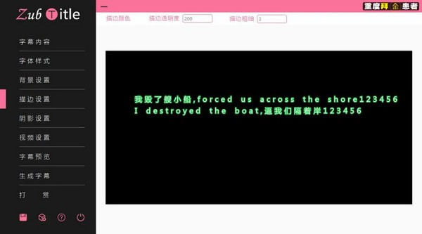 【描邊設(shè)置】界面設(shè)置字幕的描邊顏色、粗細(xì)、透明度