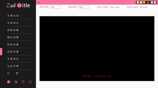 【視頻設(shè)置】頁面用于設(shè)置產(chǎn)生的字幕圖片相對(duì)應(yīng)的視頻屏幕分辨率大小