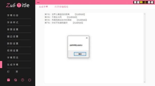 最后就是生成字幕了