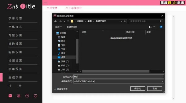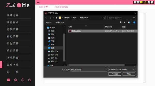 第一個(gè)是保存當(dāng)前工作的后綴為.zubtitle的工程文件