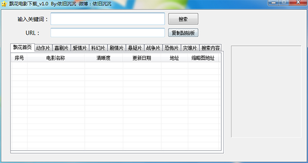 3、搜索完成后點(diǎn)擊電影名字后將自動獲取下載URL,點(diǎn)擊復(fù)制到粘貼板,然后可以使用下載工具下載。當(dāng)然也可以使用其它下載工具。